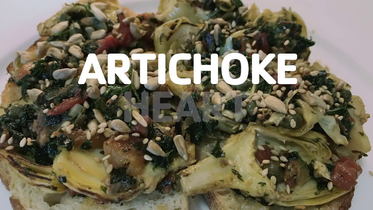 Top each toast with the artichokes and place the chunky “sauce” into the little artichoke “cups.” Sprinkle with seeds.